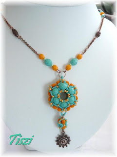 Most töredelmes vallomást fogtok olvasni... 2 hete kísért álmomban egy medál. Aminek csak a formájára emlékszem halványan. Az elmúlt időben ezért voltak olyan hasonlók a medáljaim, mert akarva akaratlanul is ezt az álmot igyekeztem megvalósítani. Ez sem lett olyan mint álmomban. De ma megmakacsoltam magam és azt mondtam, hogy juszt sem fűzök egy darabig medált. Vagy ha igen, akkor sem ilyet. Igaz, látványra a Hedda nem igen hasonlít pl. a Fáta medálra. De a fűzésmenete, az alapja egészen olyan. :) Csak a Fáta bonyolítva lett...